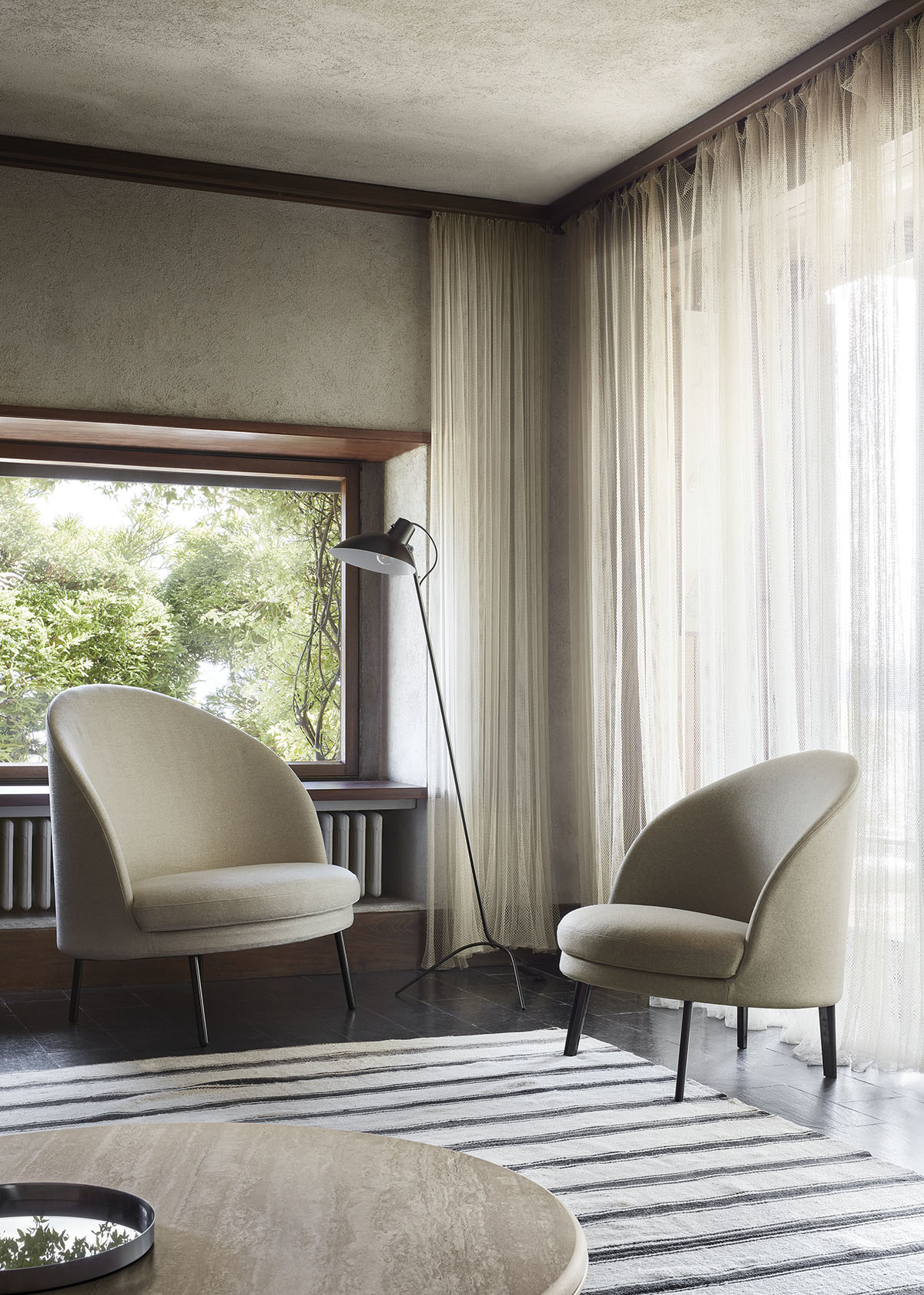 Jules & Jim are two simple armchairs, with a high seating comfort. Jules is the small version and Jim the larger version
